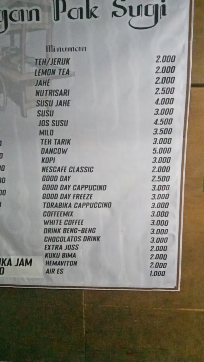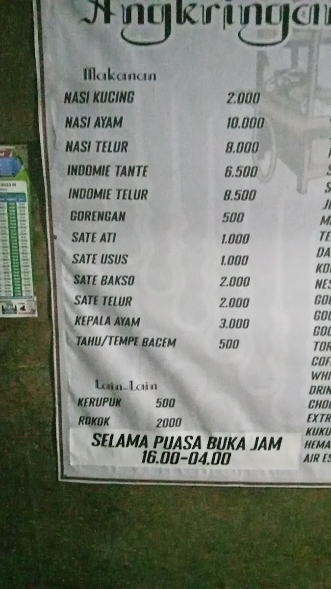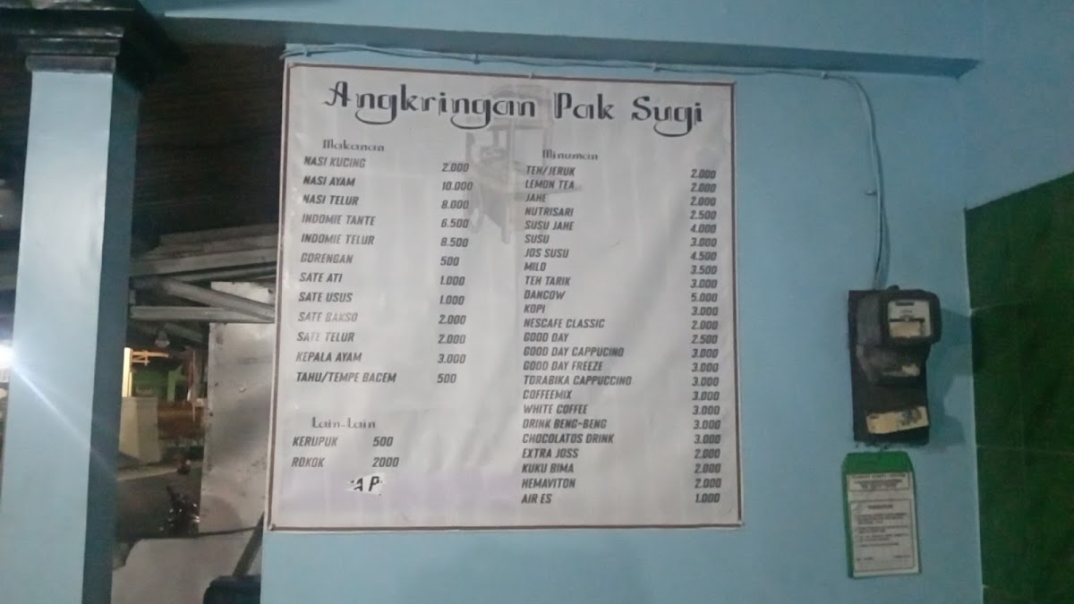 Angkringan Pak Sugi (baru) offers an authentic taste of Yogyakarta’s beloved street food culture with a fresh vibe in a new location at Jl. Nusa Indah, Sleman. This humble eatery stands out for its affordable prices—with staples like nasi for just 1k IDR, and an array of sate-satean ranging between 0.5k to 2k IDR. The menu is impressively diverse, featuring traditional gorengan, sate, nasi ayam, mie, and more, perfectly capturing the essence of Angkringan dining.